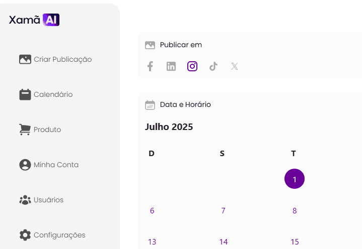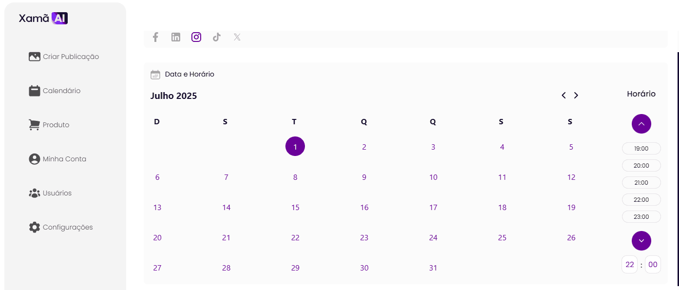 Após selecionar as redes sociais em que deseja agendar a publicação, você deverá definir a data e o horário de postagem.