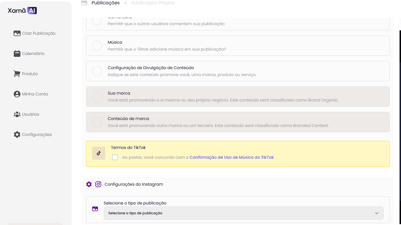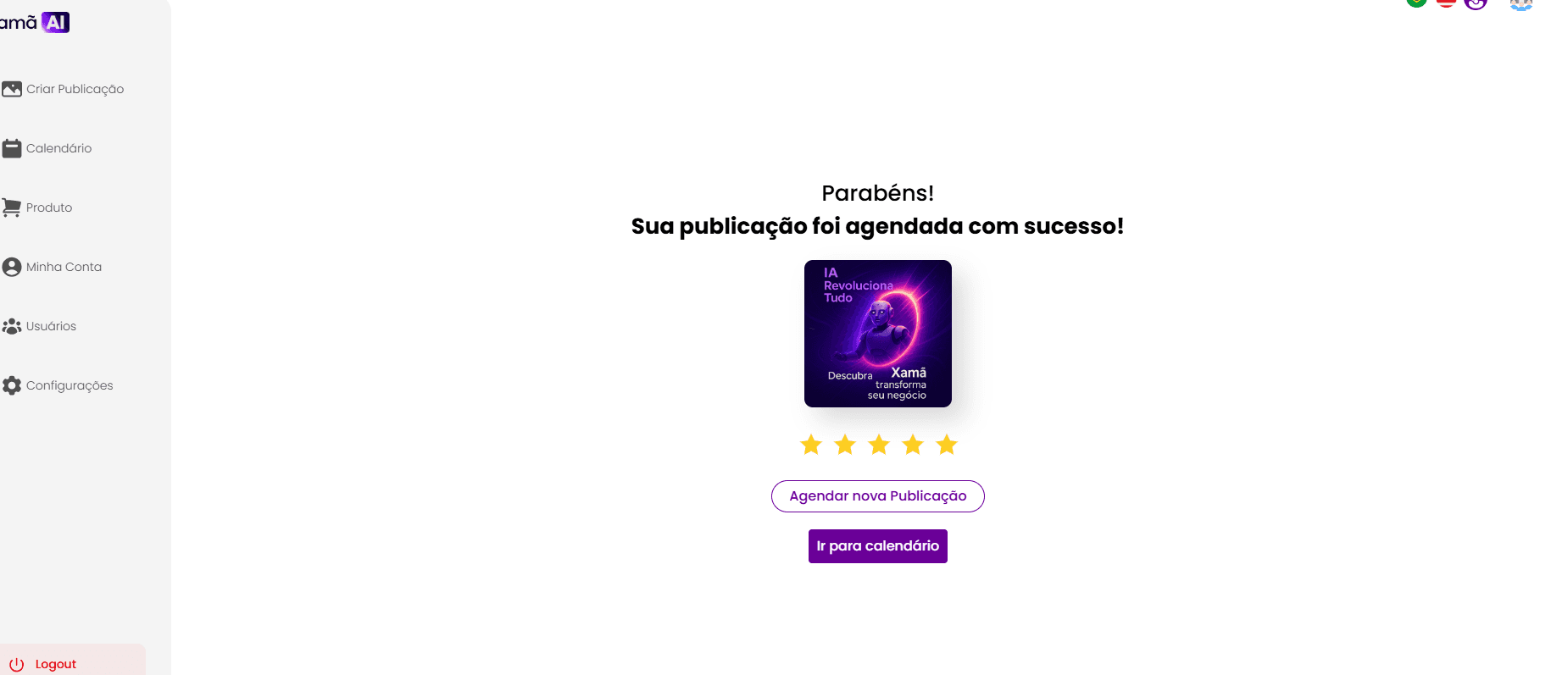 Após o agendamento, você será redirecionado para uma tela de confirmação, onde poderá avaliar a qualidade da publicação gerada.